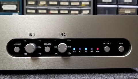 MM gain is 42db, loading 47K ohms; capacitive loading is selectable between 100pf, 200pf and 270pf. MC gain is 62db with loading selectable between 100, 500 and 1K ohms. Internal switching of gain and loading is accomplished using high reliability small signal relays.