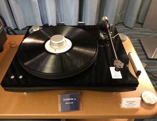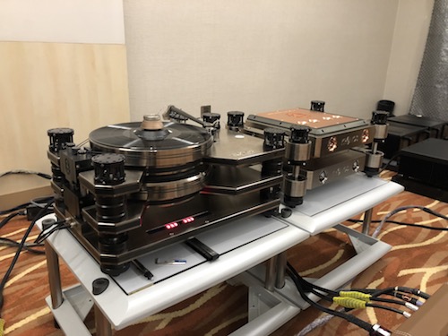 It’s always a sight to be greeted by a full FM Acoustics setup complete with a FM Resolution Series Phono (de-click and de-crackle) and a Vertere Record Player SG-1 Standard, sitting on a Thixar isolation platform, in the Absolute Sound room. Only lightning can be quicker with its live-like music impressions.