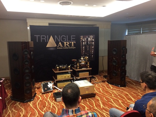 Looking somewhat slightly less elegant, but by no means un-elegant, were Venture Audio’s Xtreme loudspeakers, with a vinyl front end source by Triangle Art (not to be mistaken for French loudspeaker manufacturer Triangle), which truly emphasised the word “Art” in its name. The Triangle Art looked like it had two rotating platters, but unlike the Kronos, they looked to both be spinning in the same direction. The Ventures were easily capable of eardrum-busting SPLs while remaining composed (as in no smoke or bottoming out noises from its many mounted drivers), and literally shook me with a remixed version of Modern Talking’s You’re My Heart, You’re My Soul (yes, that Modern Talking).