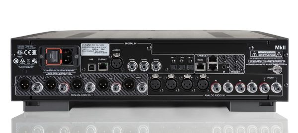 The PRE Mk II also offers an abundance of connection options, including two XLR, two RCA and dual phono inputs, five XLR and five RCA outputs as well as two USB, three coaxial and three optical digital inputs. There’s even an Ethernet port for a hardwired Internet connection and a headphone output!
