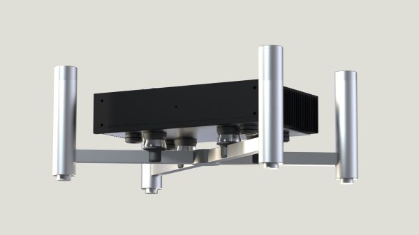 Each puck has a pivoting head to allow optimal contact to the underside of each piece of equipment to provide maximum energy transfer. When optimally positioned under the components’ internals, like transformers, clocks, capacitors and transport mechanisms, Node claims it not only drains vibrations but also “focuses stray magnetic fields that may otherwise leech across other internals.”
